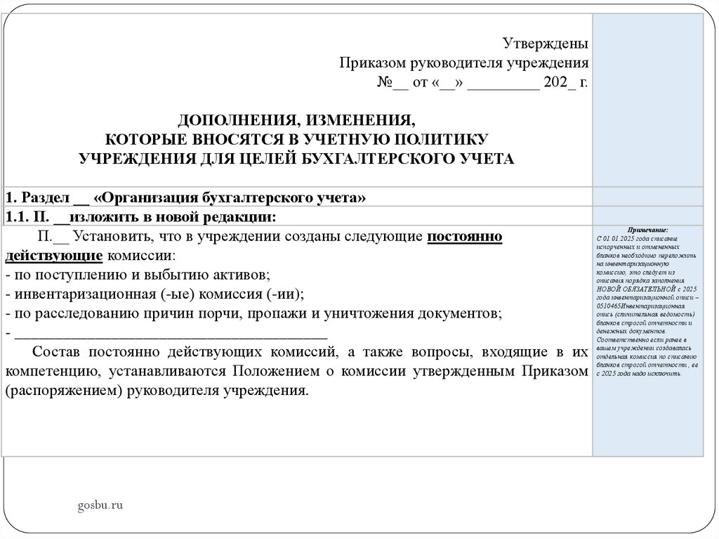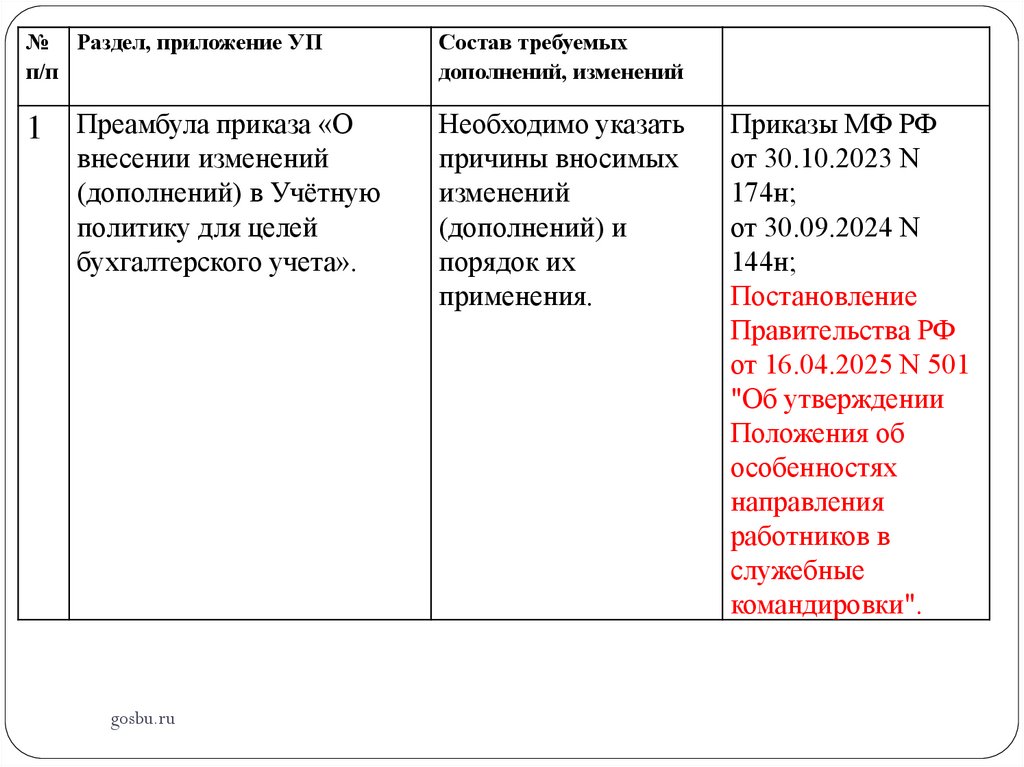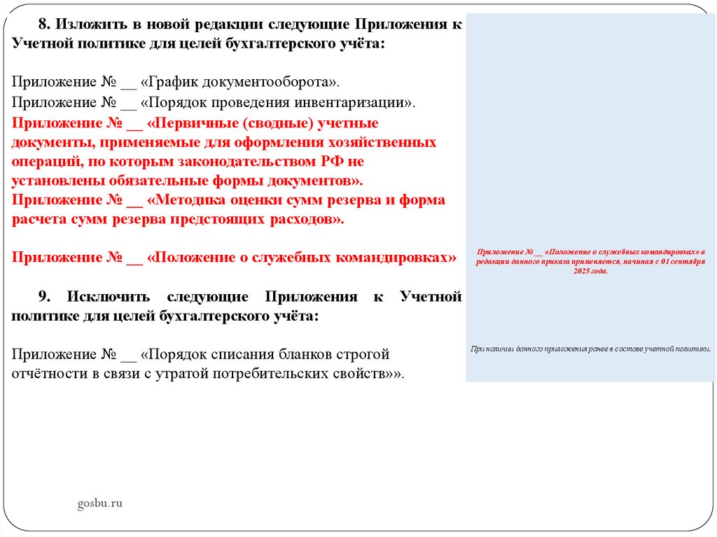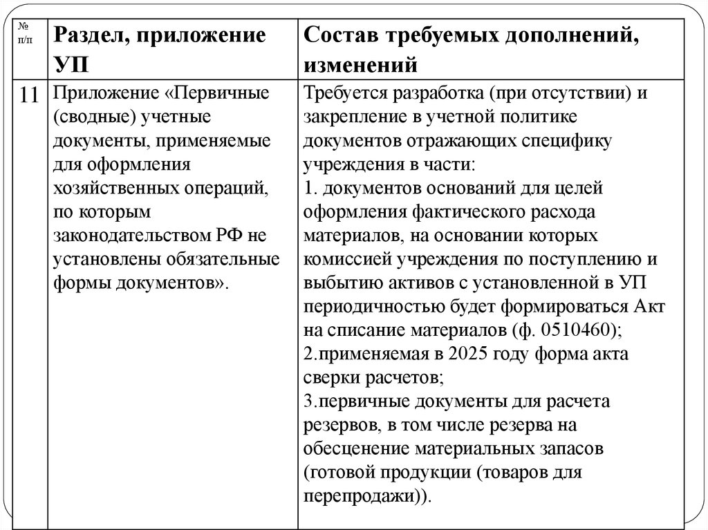 Причины изменений (дополнений) в учетную политикуНа 2025 год