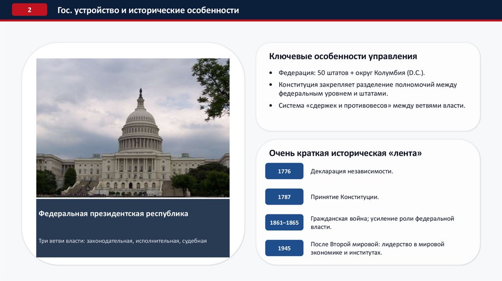 Федерация: 50 штатов + округ Колумбия (D.C.).