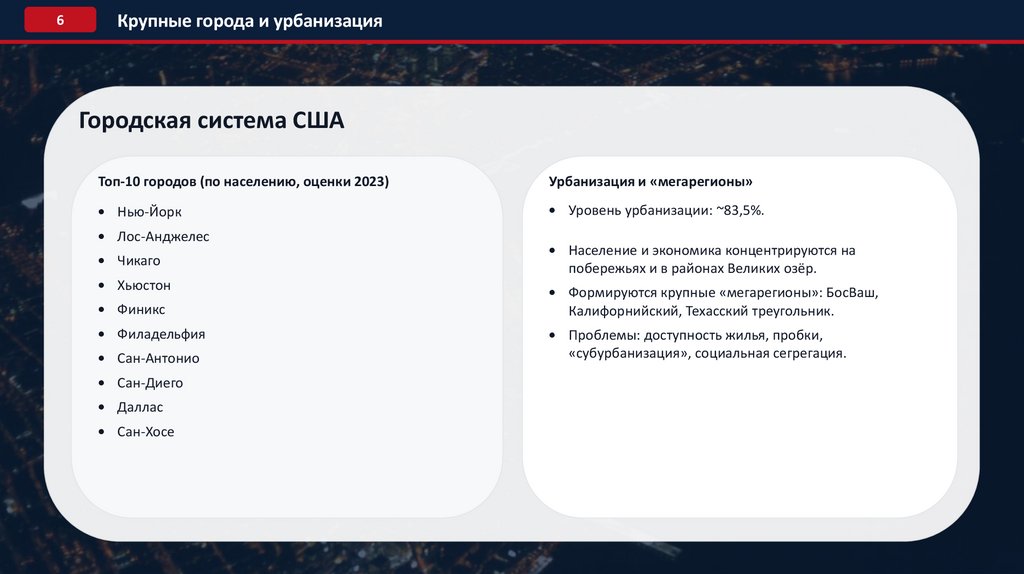 Урбанизация высокая: ~83,5% населения живёт в городах.