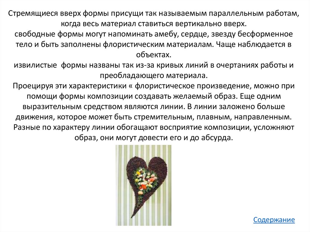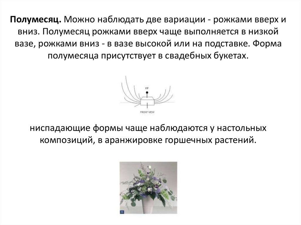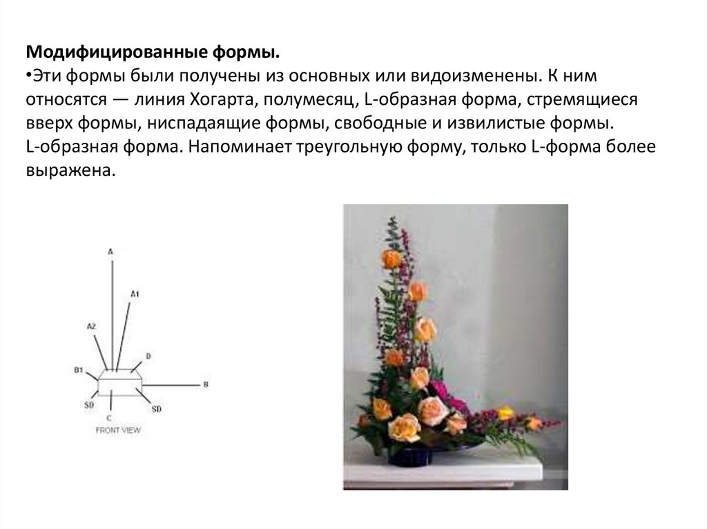 вверх формы, ниспадаящие формы, свободные и извилистые формы.