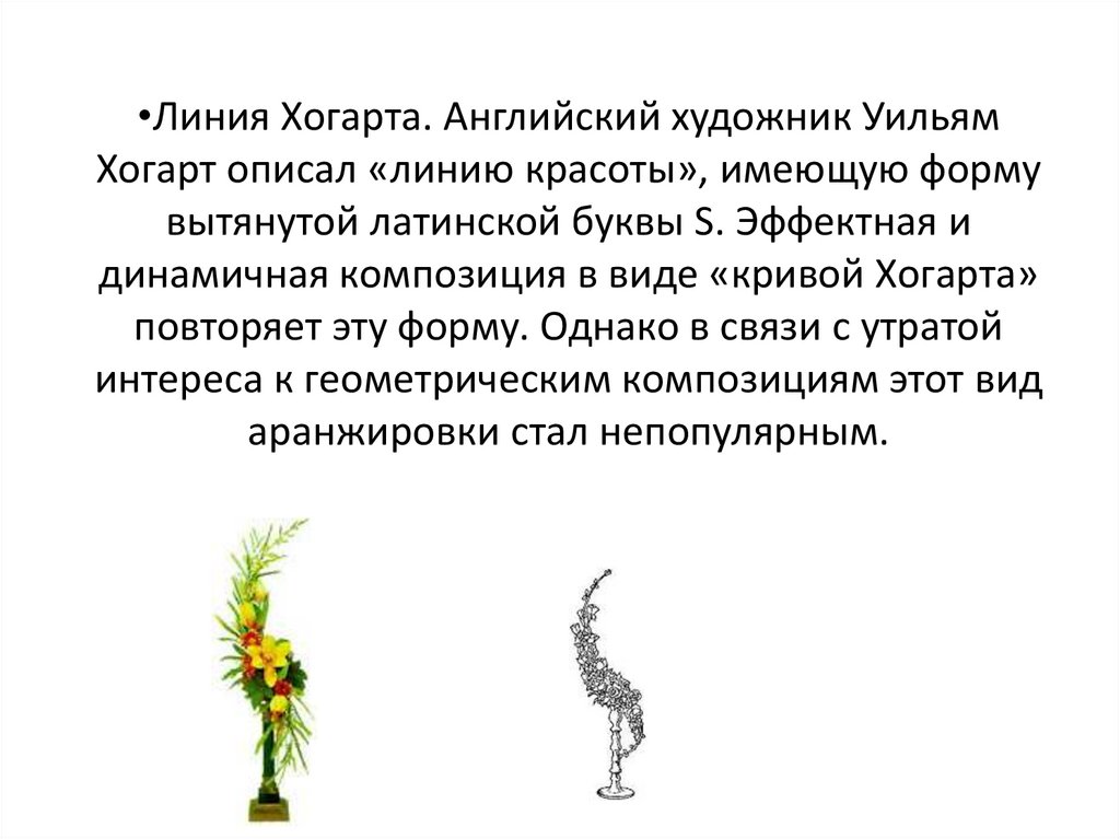 •Линия Хогарта. Английский художник УильямХогарт описал «линию красоты», имеющую форму