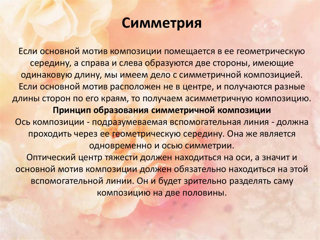 СимметрияЕсли основной мотив композиции помещается в ее геометрическую