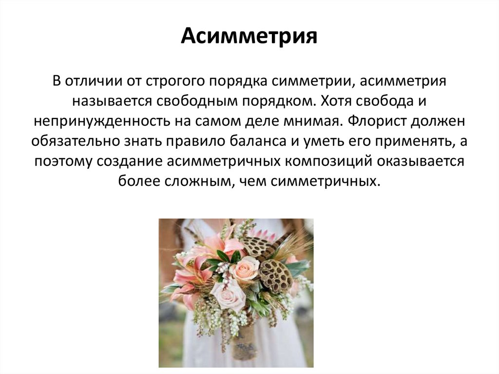 Этот принцип требует от флориста соблюдения сбалансированности, чтобы при взгляде