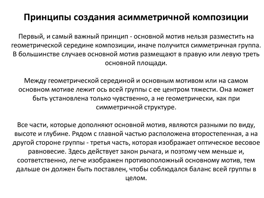 Принципы создания асимметричной композицииПервый, и самый важный принцип - основной мотив нельзя разместить на
