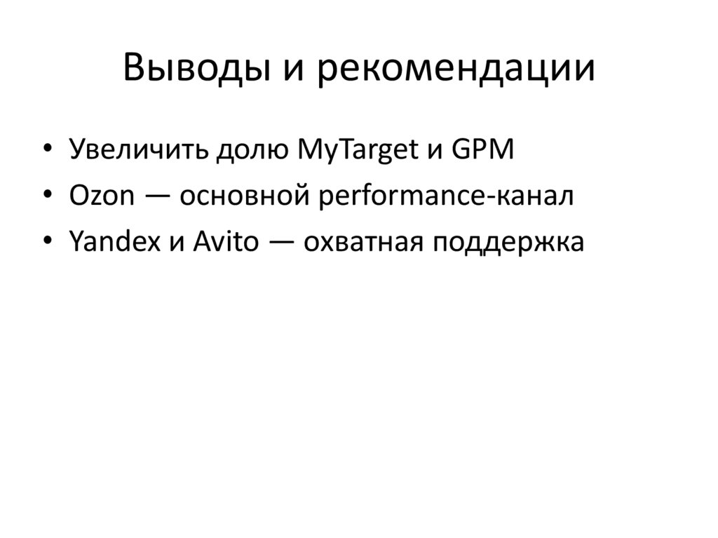 Выводы и рекомендации• Увеличить долю MyTarget и GPM