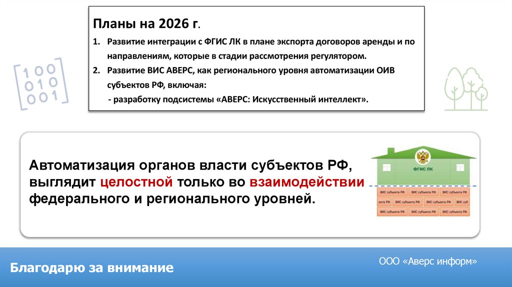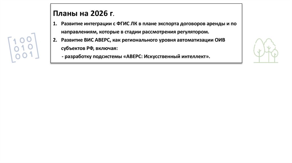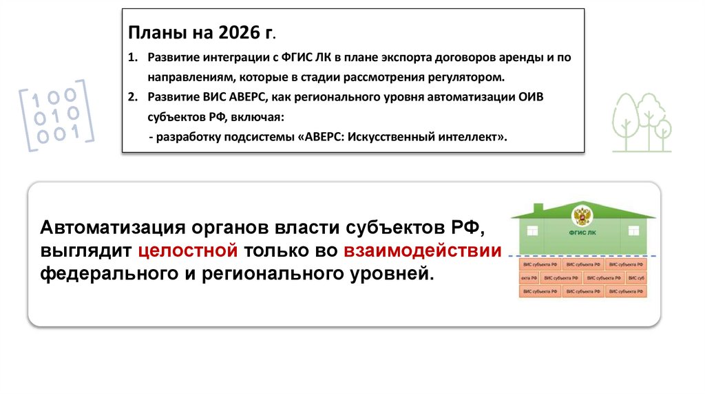 Планы на 2026 г.1. Развитие интеграции с ФГИС ЛК в плане экспорта договоров аренды и по