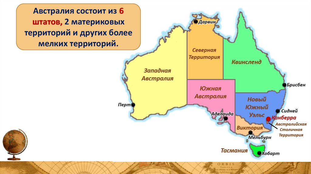 занимающее весь материк. Так же в состав входит о. Тасмания и ряд