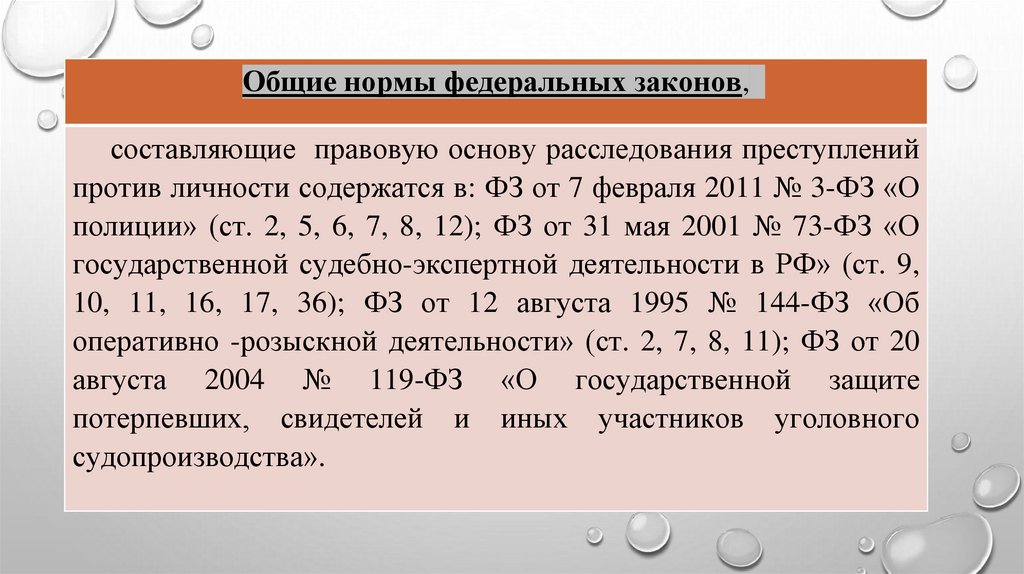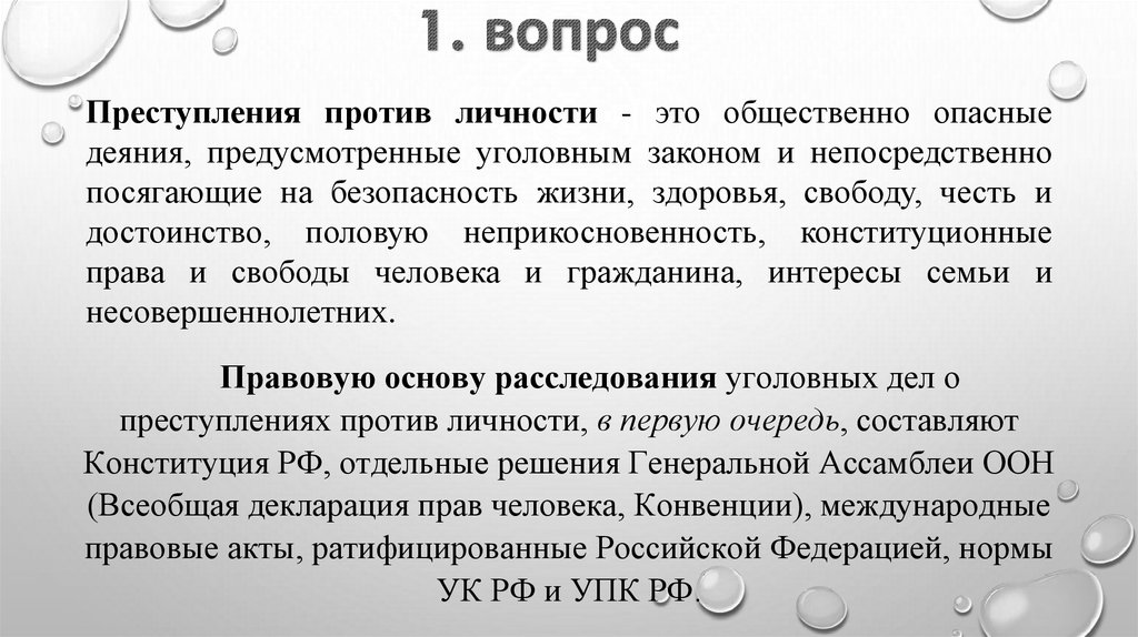 1. Тема № 1: Правовые основы и особенности расследования преступлений против личности