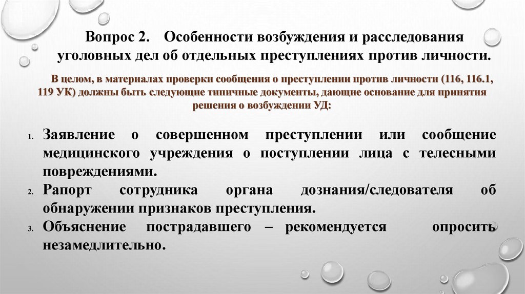 Вопрос 2. Особенности возбуждения и расследованияуголовных дел об отдельных преступлениях против личности.