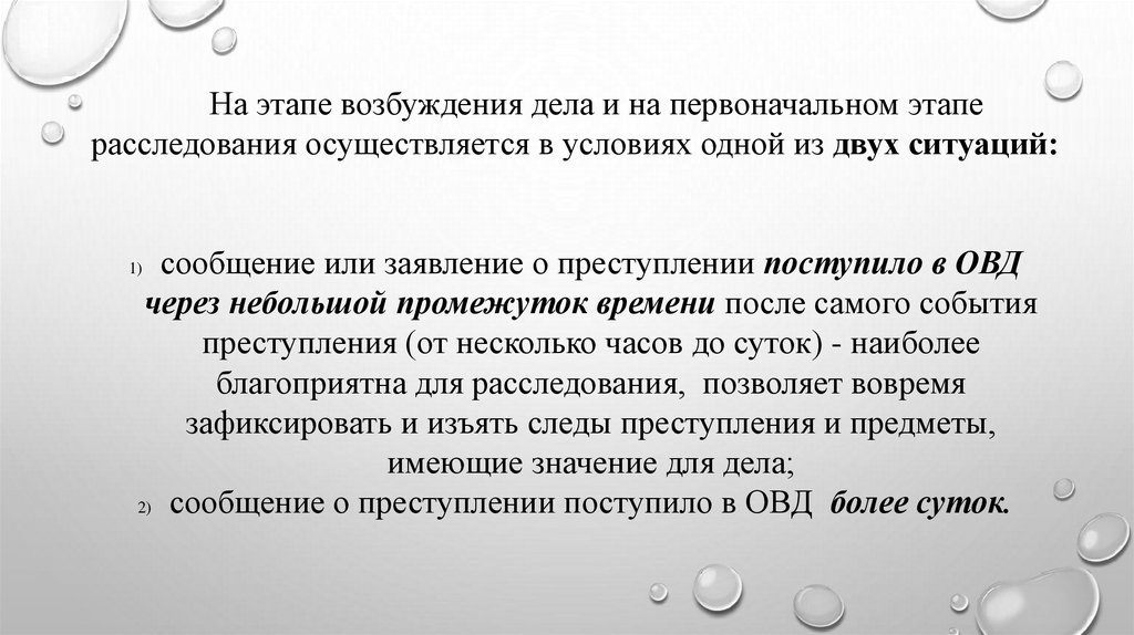 На этапе возбуждения дела и на первоначальном этаперасследования осуществляется в условиях одной из двух ситуаций: