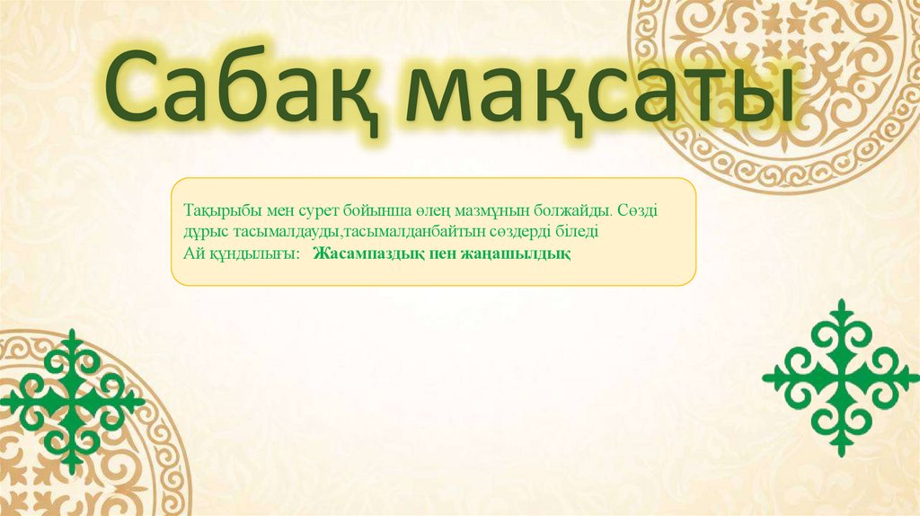 Сабақ мақсатыТақырыбы мен сурет бойынша өлең мазмұнын болжайды. Сөзді