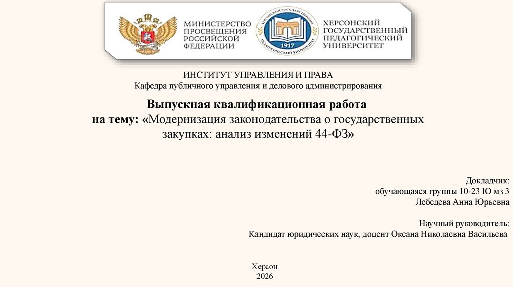 Актуальность выбранной темы исследования.Закон 44ФЗ постоянно модернизируется, что обусловлено необходимостью: