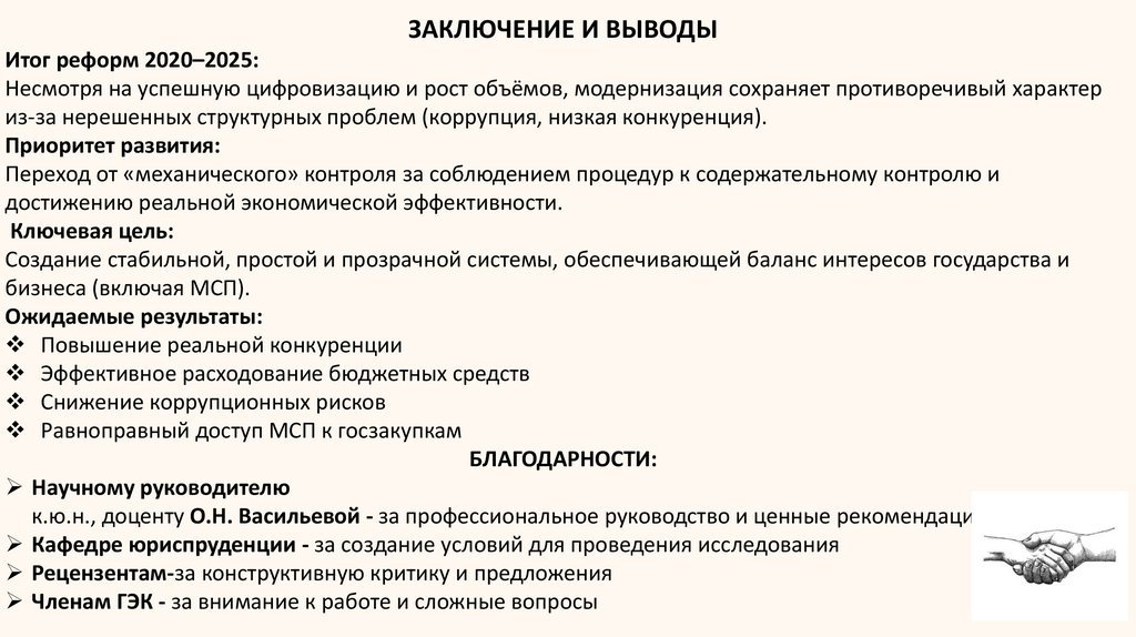 ЗАКЛЮЧЕНИЕ И ВЫВОДЫИтог реформ 2020–2025: