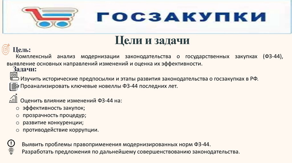 Выявить проблемы правоприменения модернизированных норм ФЗ-44.