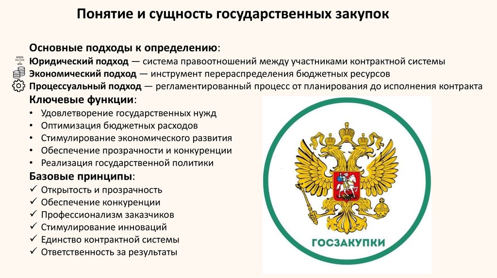Понятие и сущность государственных закупокОсновные подходы к определению: