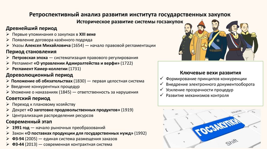 Ретроспективный анализ развития института государственных закупокИсторическое развитие системы госзакупок