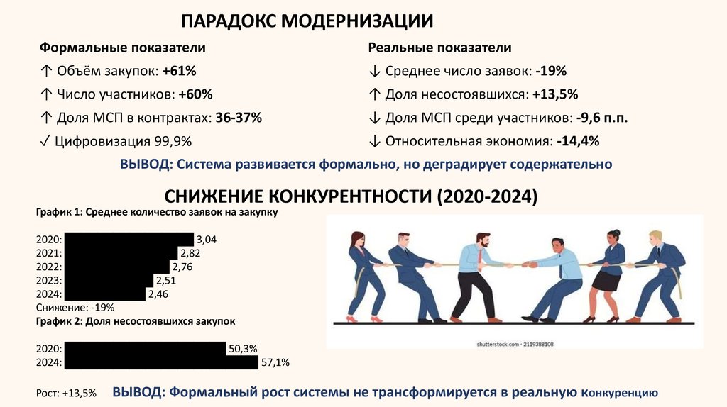 ВЫВОД: Формальный рост системы не трансформируется в реальную конкуренцию