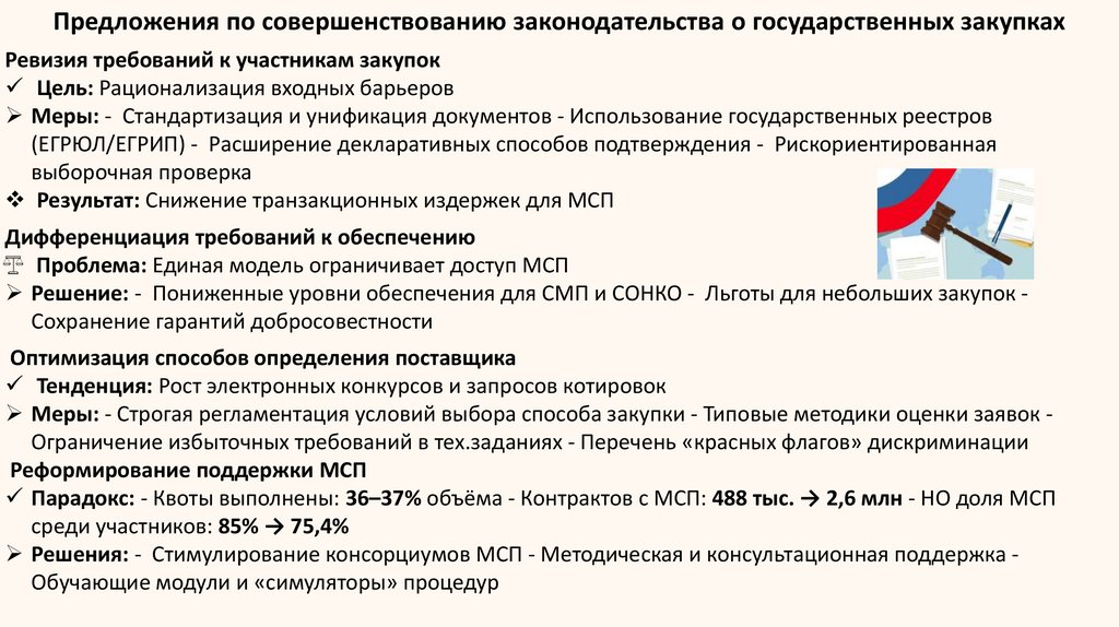 Предложения по совершенствованию законодательства о государственных закупкахРевизия требований к участникам закупок