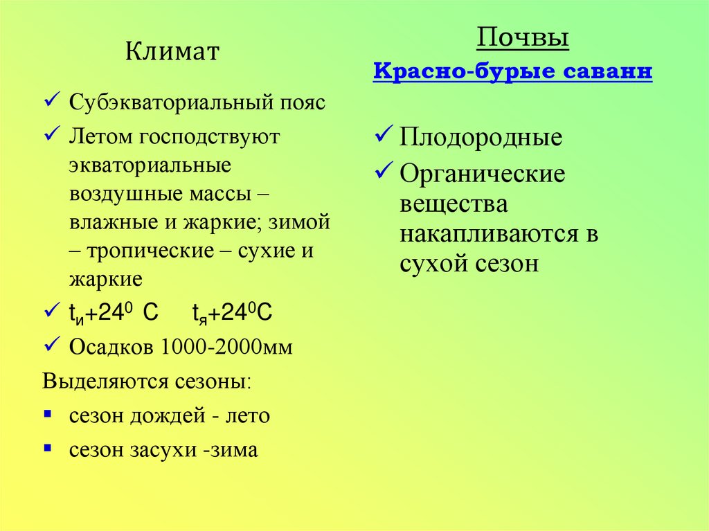Саваннаэто природная зона, для которой характернасмена сухого и влажного сезонов года,