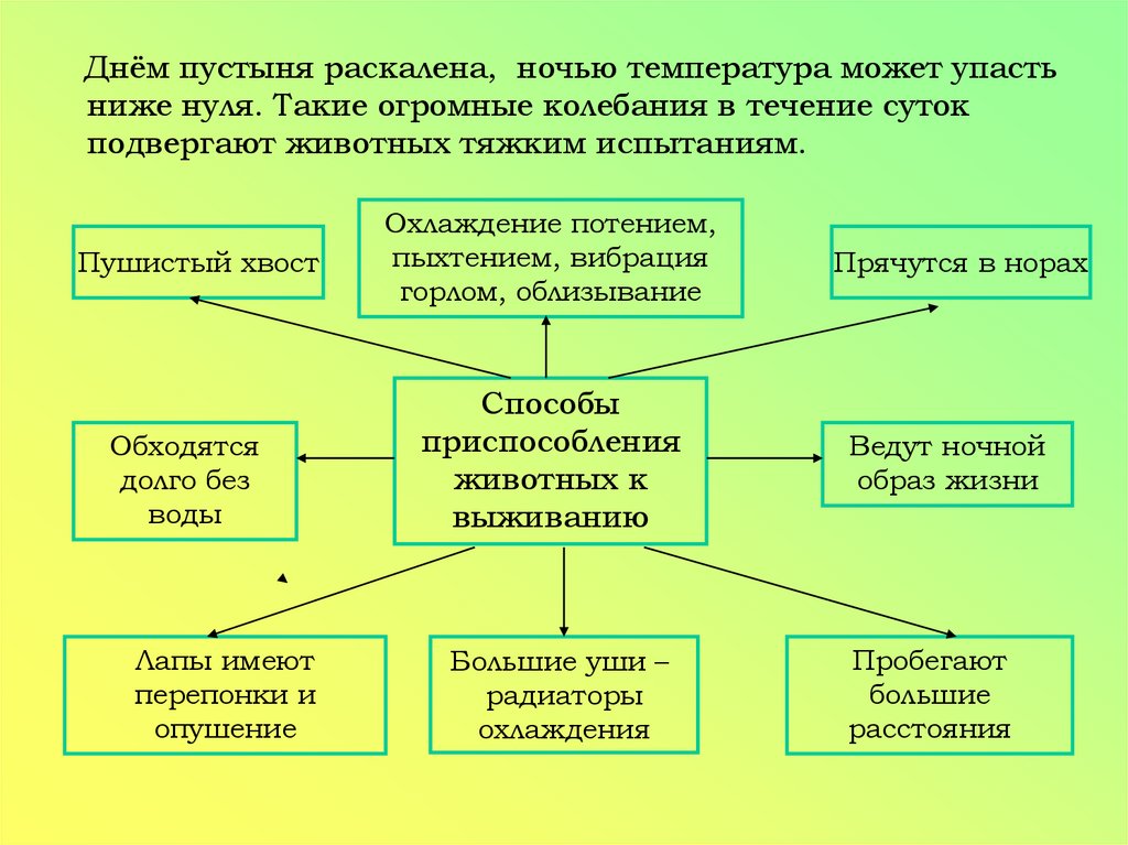 Днём пустыня раскалена, ночью температура может упастьниже нуля. Такие огромные колебания в течение суток