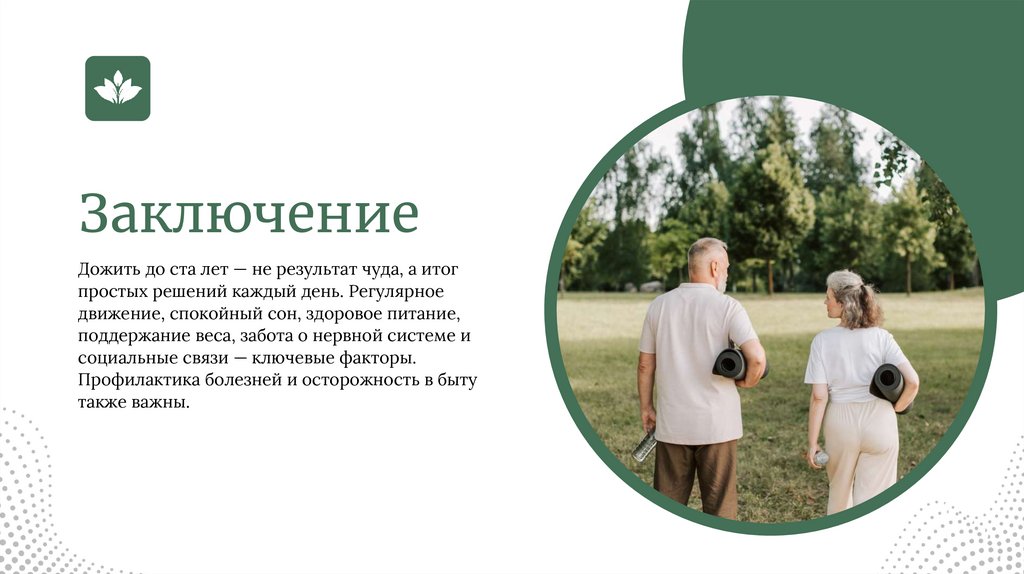 ЗаключениеДожить до ста лет — не результат чуда, а итог