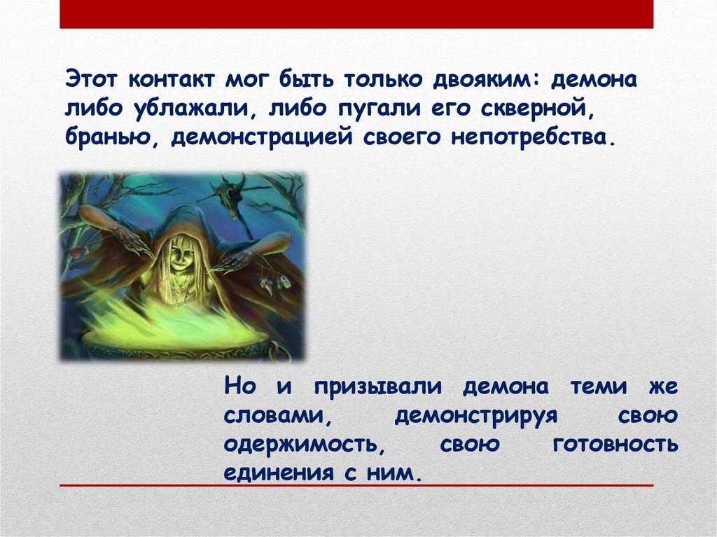 Этот контакт мог быть только двояким: демоналибо ублажали, либо пугали его скверной,