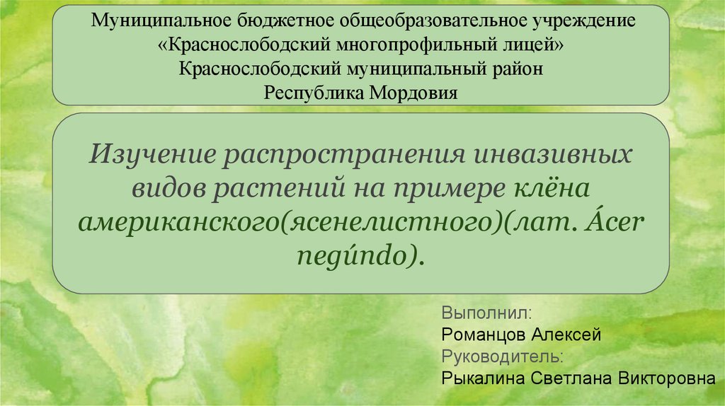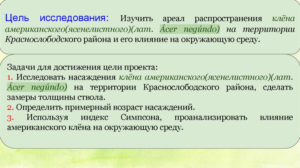 1. Исследовать насаждения клёна американского(ясенелистного)(лат.