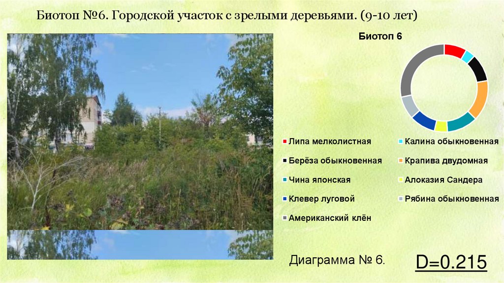 Биотоп №6. Городской участок с зрелыми деревьями. (9-10 лет)Биотоп 6