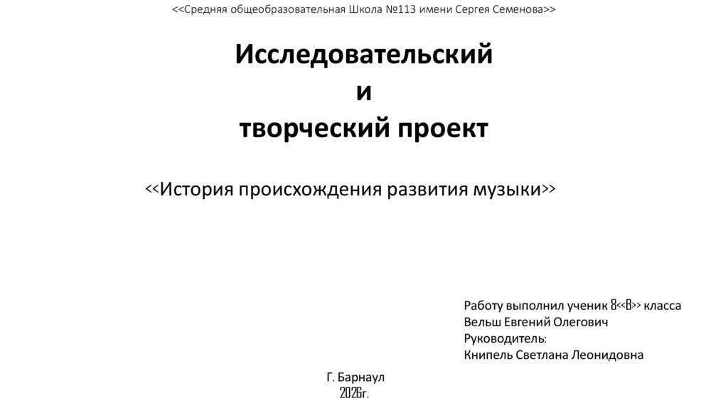 <<Средняя общеобразовательная Школа №113 имени Сергея Семенова>>Исследовательский