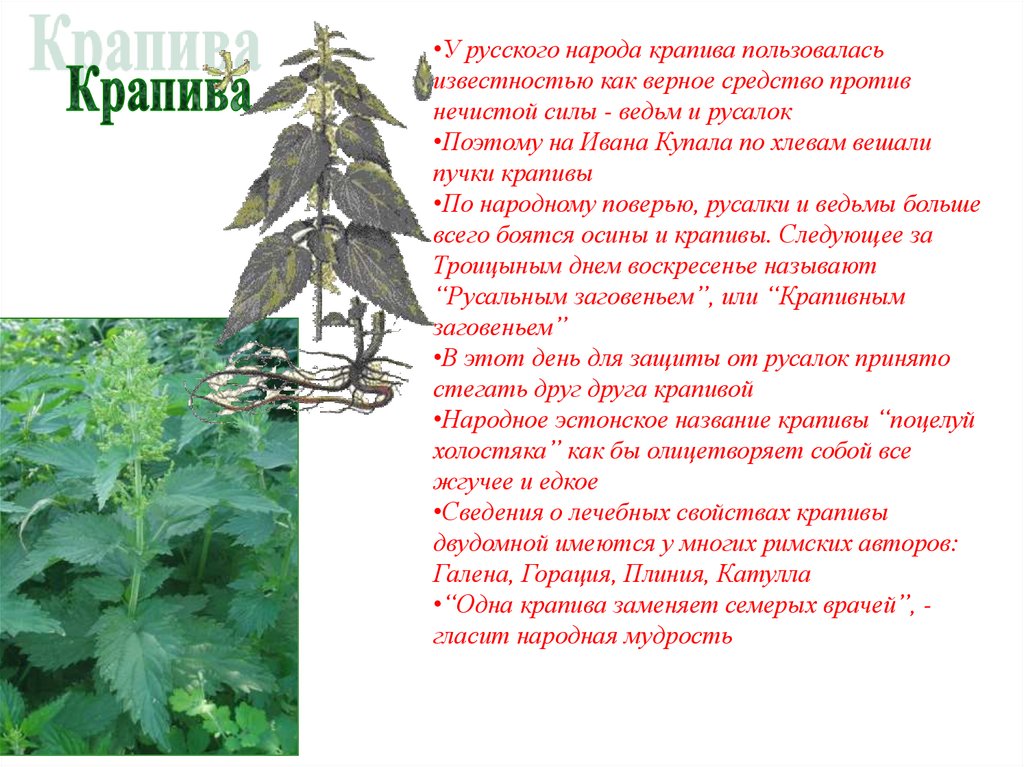 •У русского народа крапива пользоваласьизвестностью как верное средство против
