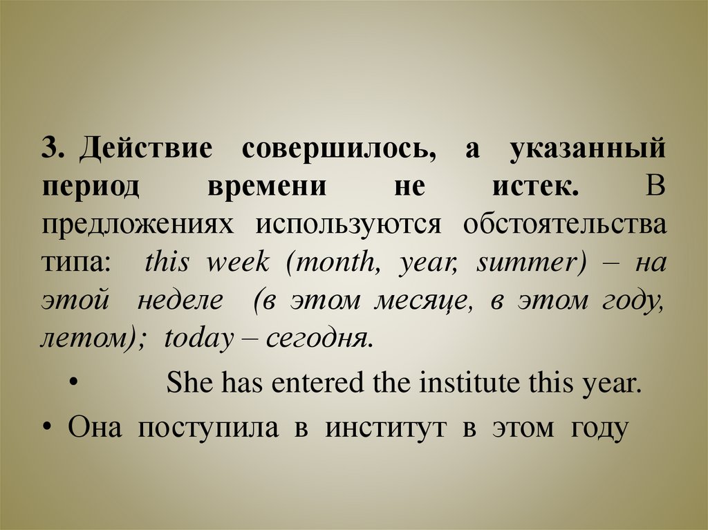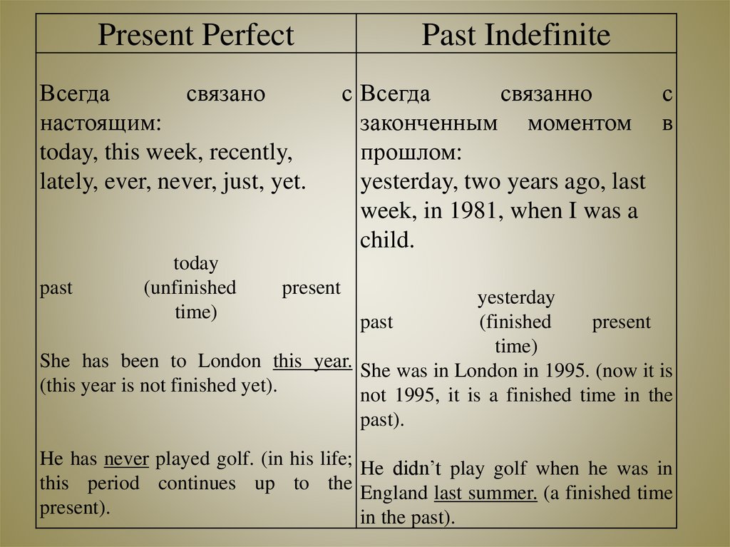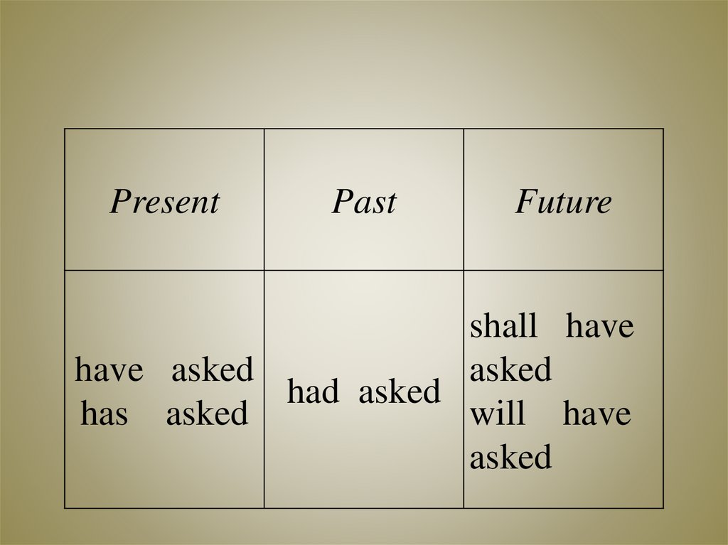 • Времена группы Perfect (Present, Past,Future) выражают действие, которое уже