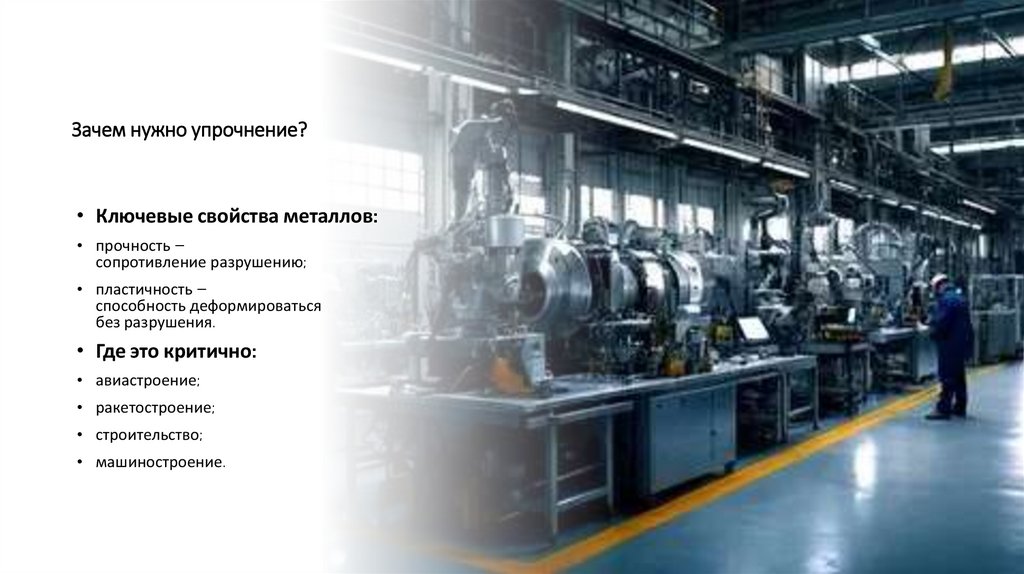 Зачем нужно упрочнение?• Ключевые свойства металлов: