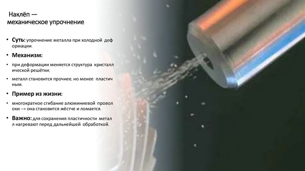 • Суть: упрочнение металла при холодной деф