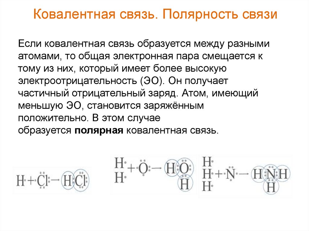 Ковалентная связь. Полярность связиЕсли ковалентная связь образуется между разными