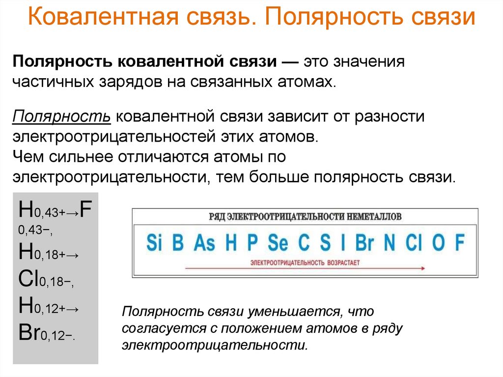 Ковалентная связь. Полярность связиПолярность ковалентной связи — это значения