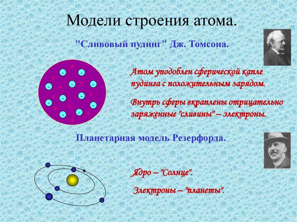 Модели строения атома."Сливовый пудинг" Дж. Томсона.