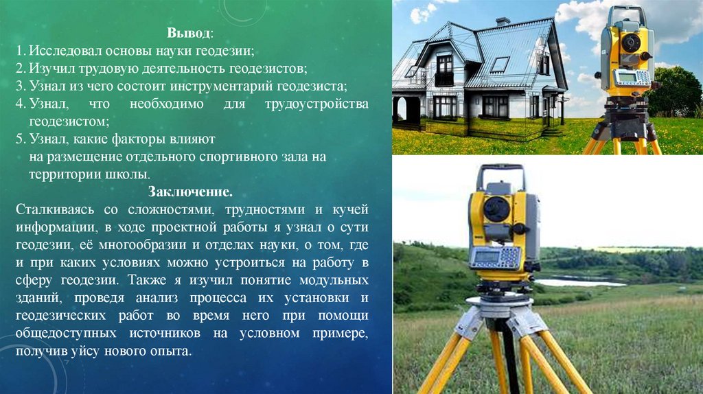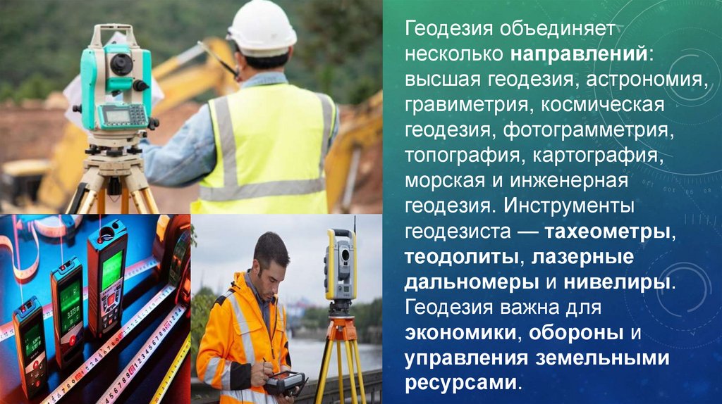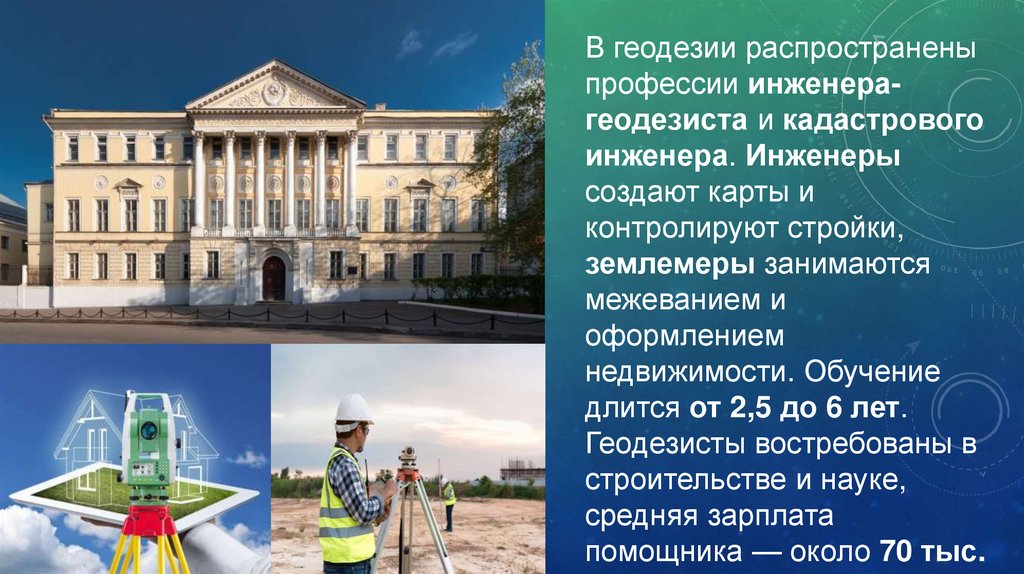 В геодезии распространеныпрофессии инженерагеодезиста и кадастрового
