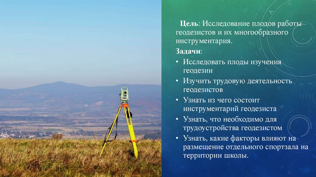 Цель: Исследование плодов работыгеодезистов и их многообразного