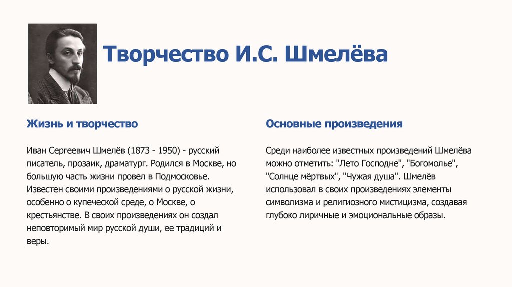 Творчество И.С. ШмелёваЖизнь и творчество
