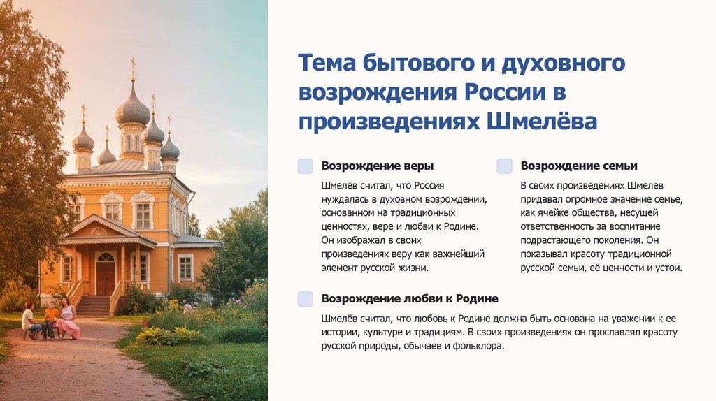 духовным ценностям. Шмелёв изображал