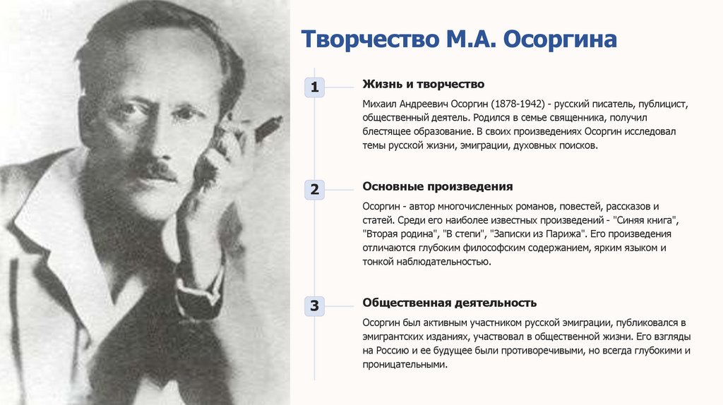 Осоргин - автор многочисленных романов, повестей, рассказов и
