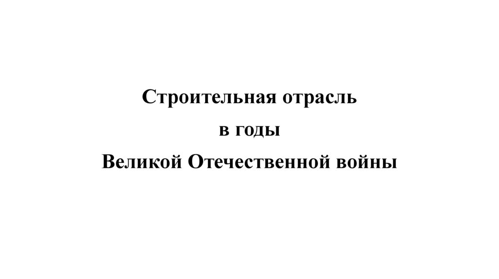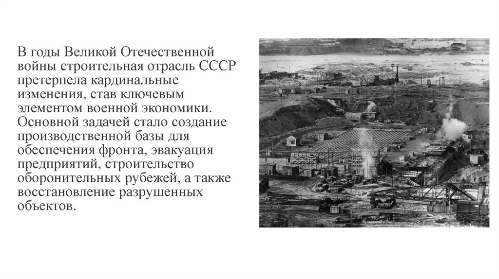 В годы Великой Отечественнойвойны строительная отрасль СССР