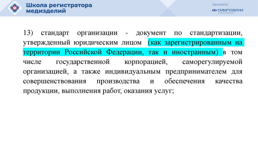 Для целей настоящего Федерального закона используются следующие основные понятия:1) документ по стандартизации - документ, в котором для добровольного и многократного