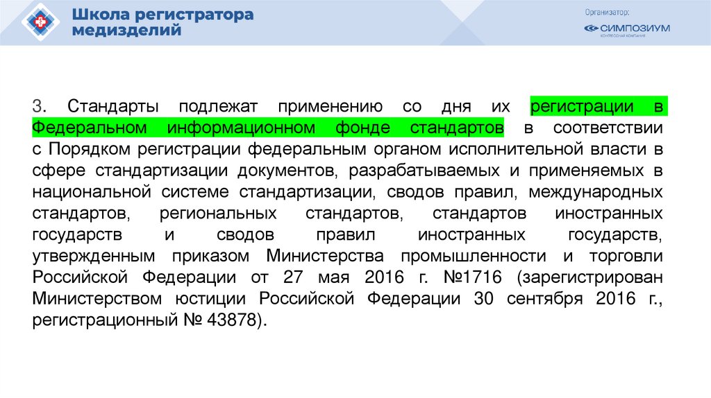 установленном порядке в Федеральном информационном фонде стандартов;