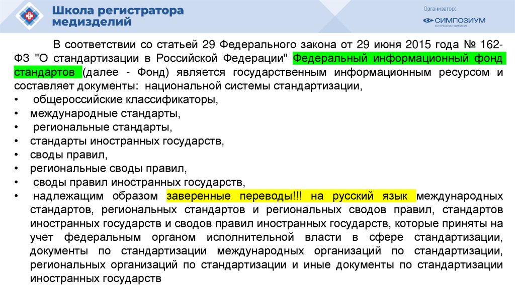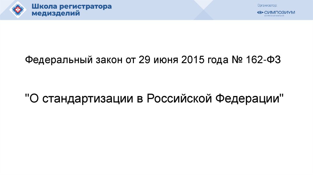 Федеральный закон от 29 июня 2015 года № 162-ФЗ"О стандартизации в Российской Федерации"