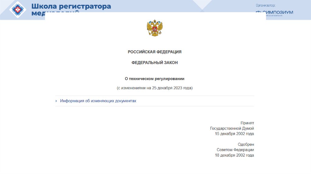 Федеральный закон от 27 декабря 2002 года №184-ФЗ"О техническом регулировании"