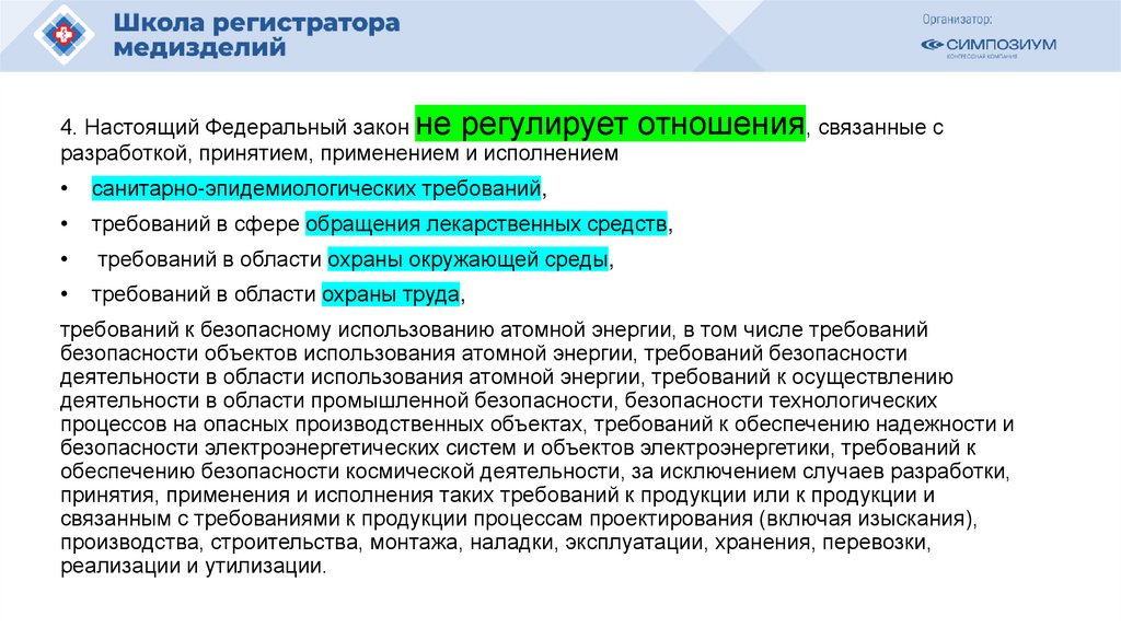 4. Настоящий Федеральный закон не регулирует отношения, связанные сразработкой, принятием, применением и исполнением