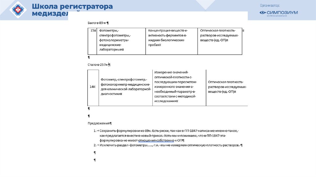 процессы при производстве медицинских изделий и комбинированной медицинской