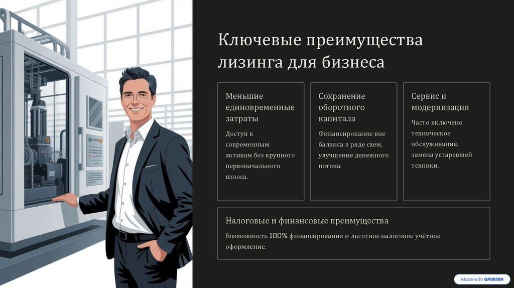Возможность 100% финансирования и льготное налоговое учётное
