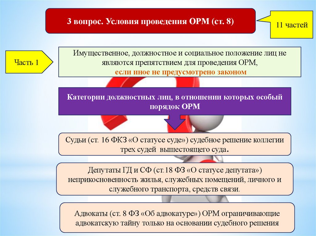 3 вопрос. Условия проведения ОРМ (ст. 8)Часть 1